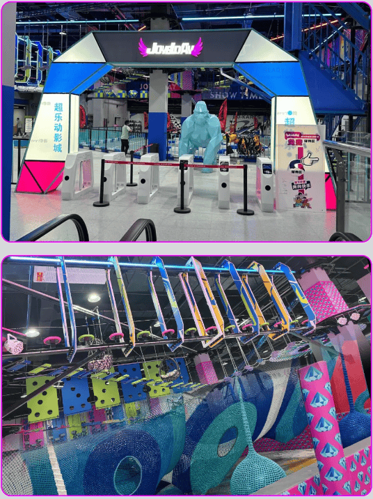 涵盖 100 多个游乐项目,分为六个大块分区,满足从小孩到成年人、运动爱好者到挑战寻求者等不同人群的需求。以 “全时段娱乐” 为核心,让消费者从进门到离开都能保持新鲜感。实现1+1>2的场景融合
