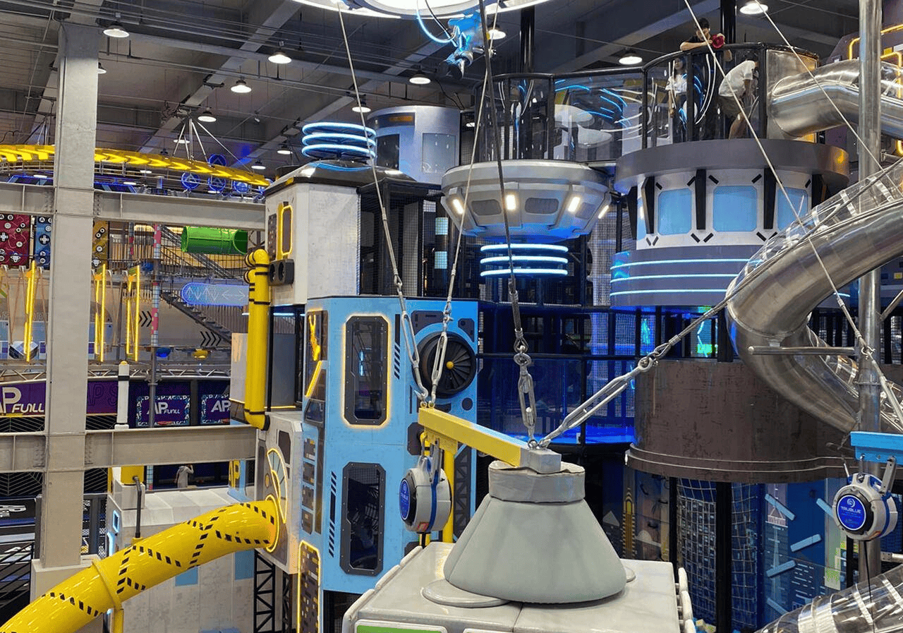 设备组合:数字运动区(智能攀岩、VR竞技)与无动力区(立体迷宫、蹦床矩阵)5:5配比