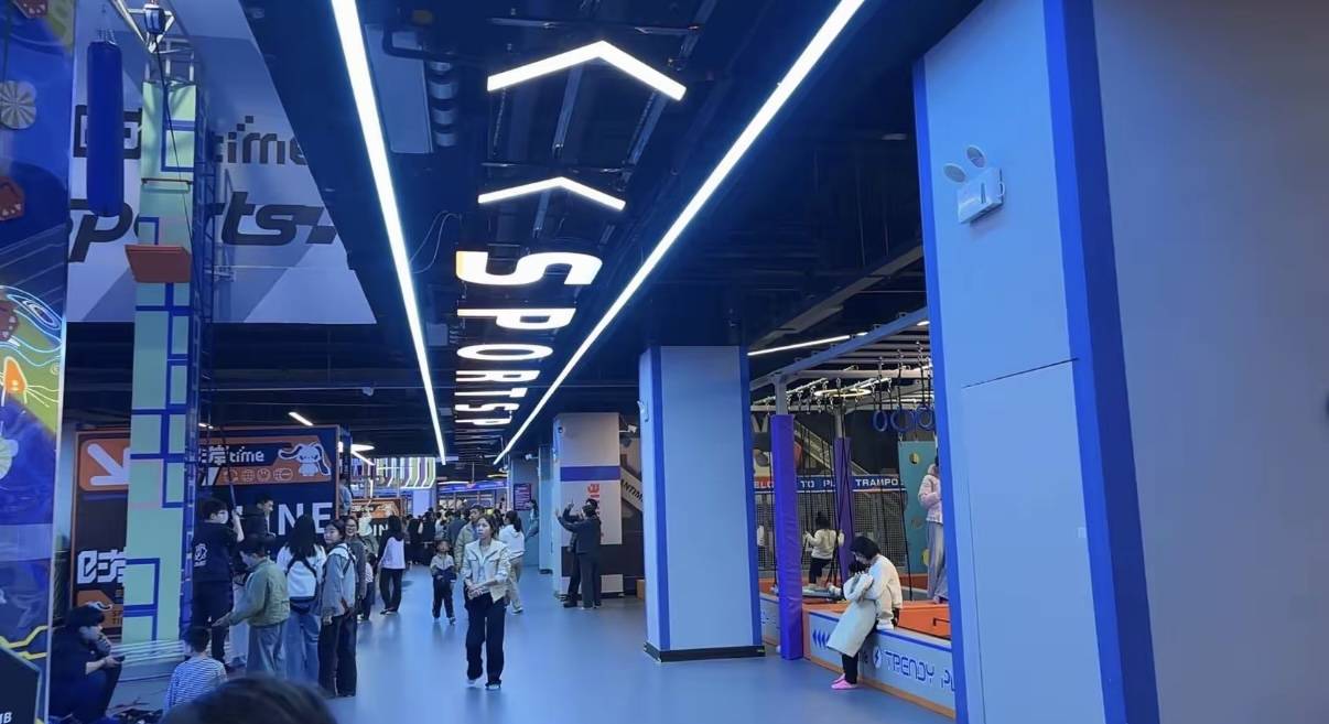 以未来潮玩街区为核心主题,采用开放布局与半通透分区策略,兼顾8.5m局部挑高带来的开阔之感与3.5m常规层高的空间利用效率,打造全龄覆盖、全需求适配的业态矩阵,有效延长用户停留时长,提升商业转化效率。这正是潮玩运动馆能够火爆、盈利且复购率高的核心缘由。