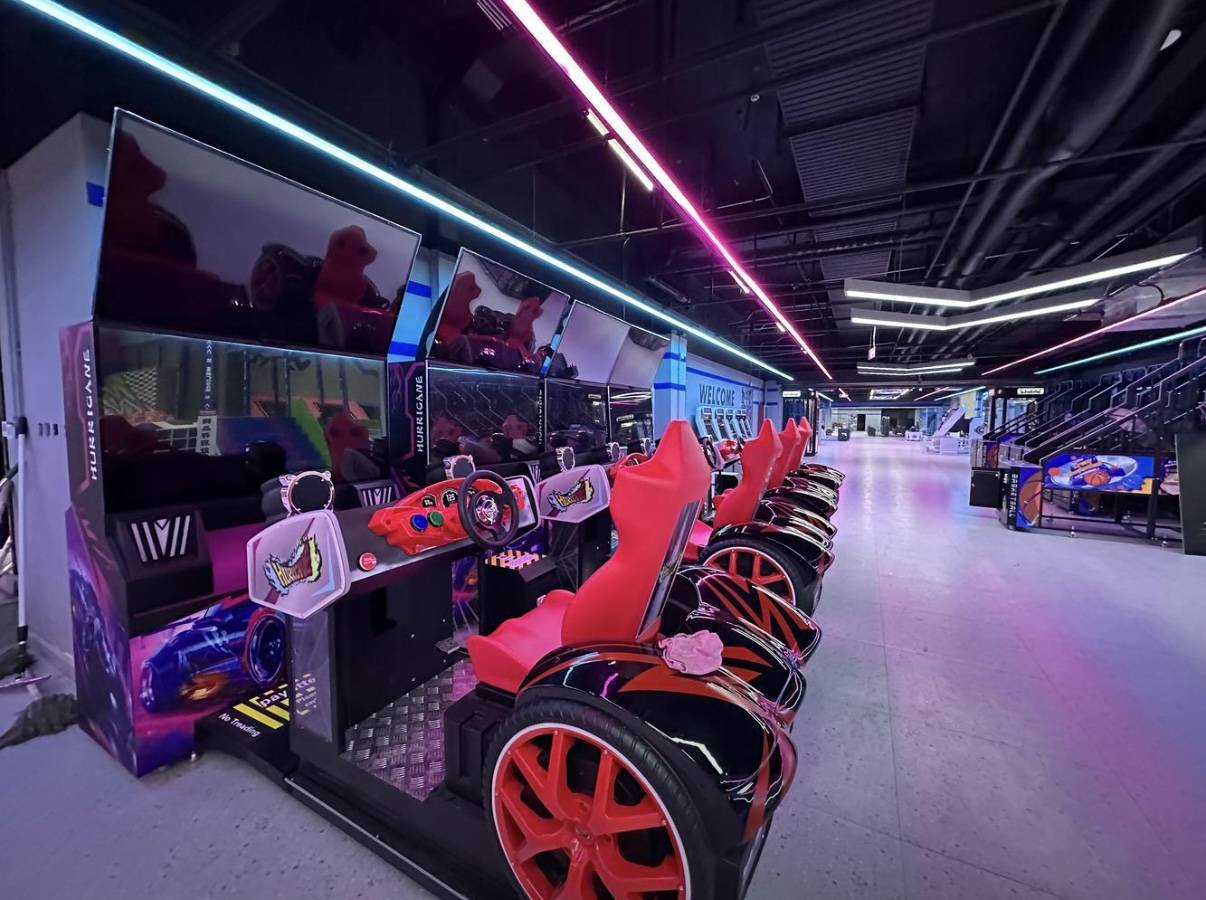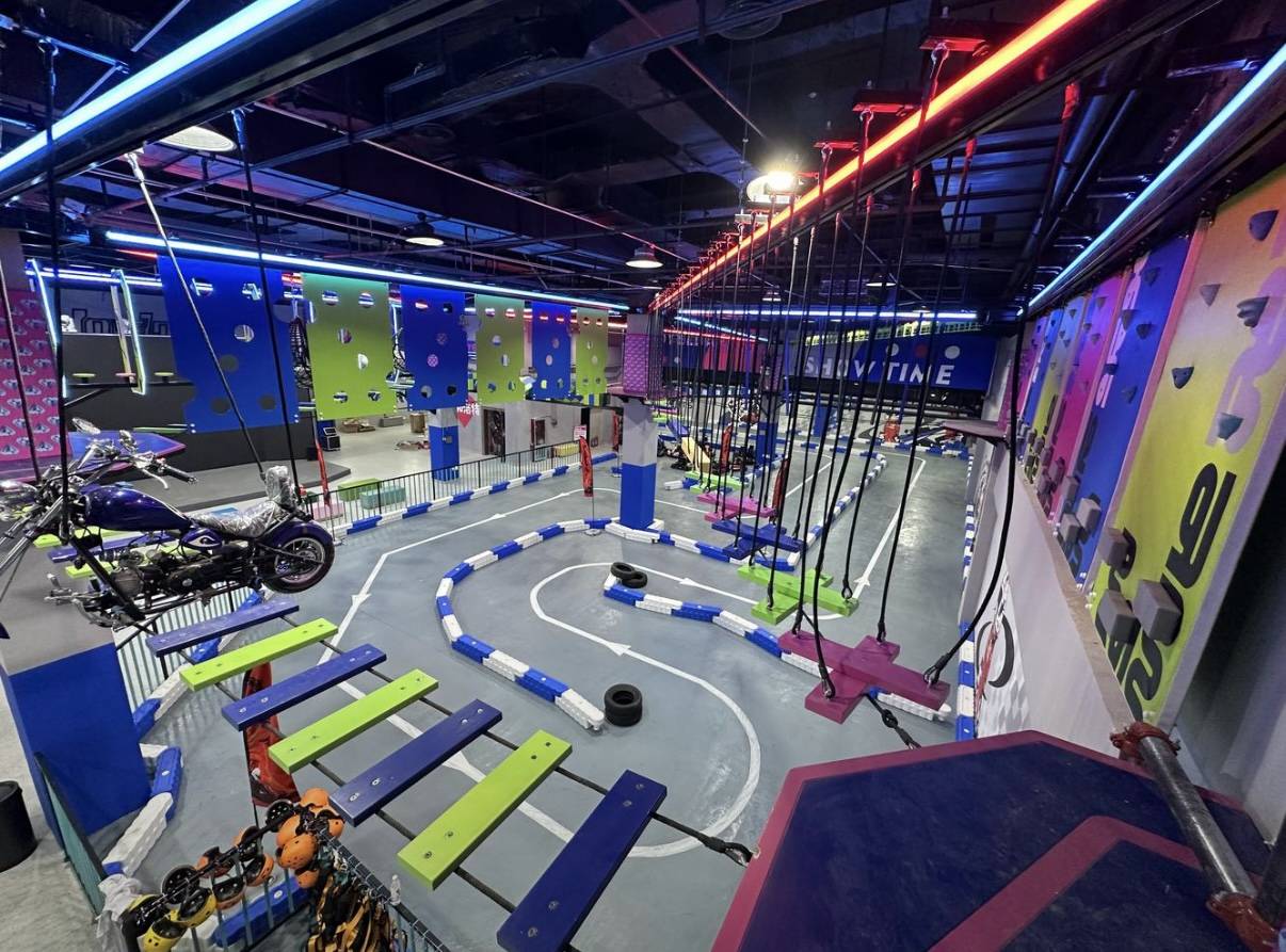 分区各具特色:无动力区域含旱雪滑梯、高空拓展、蹦床、攀岩等特色项目,与首店形成差异;传统区域涵盖射击、卡丁车、真人CS、K歌等经典业态;科技区域引入VR对战、PS5、飞行影院、电玩等设备,强化沉浸式体验。