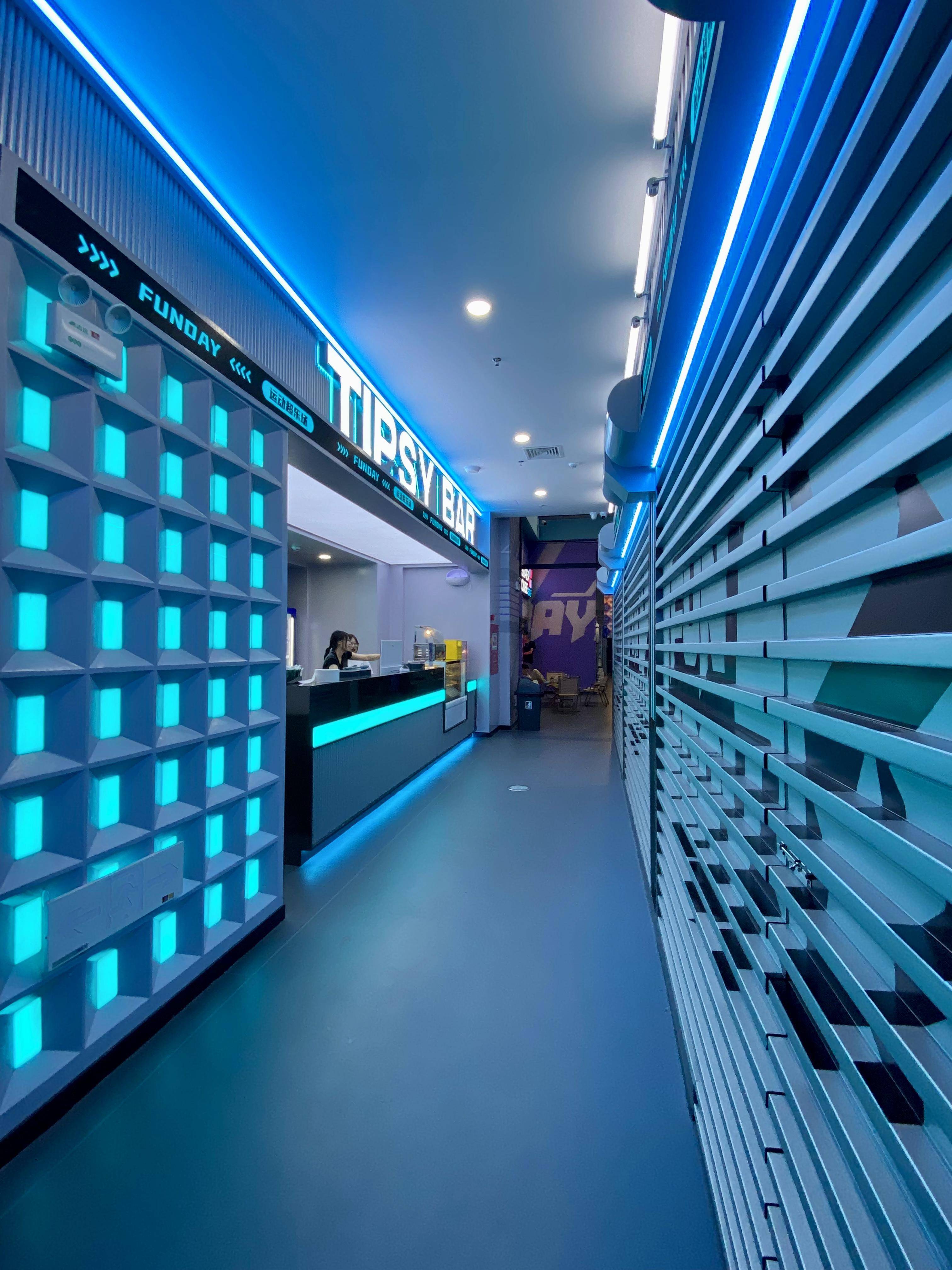 我们华韵游乐的设计理念以冰蓝、浅紫和浅灰为主色调,营造出一种神秘、现代的氛围,让您仿佛置身于未来世界的虚拟空间。在这里,我们追求的不仅是运动与娱乐的结合,更是通过独特的设计和体验,激发您内心深处的创意和激情。每一个细节都被精心打造,从进门的潮玩元素到灯光的变化和装饰的设计,都旨在引领您进入一个全新的体验境界。