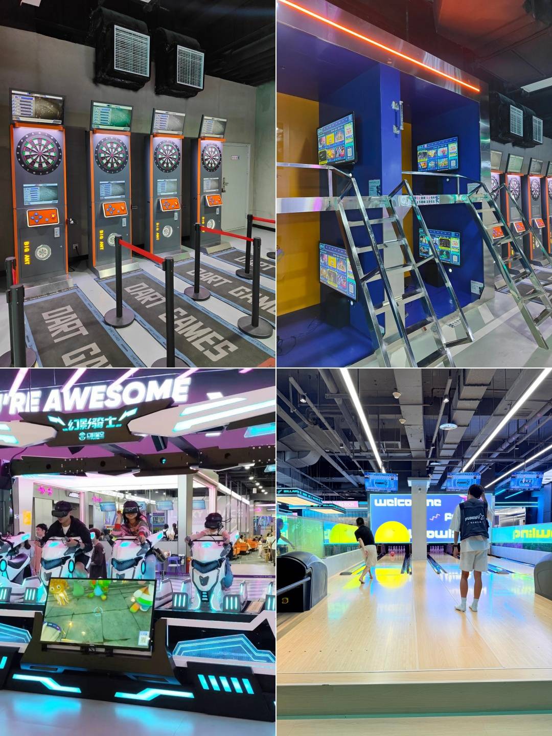 蹦床、梅花桩、魔鬼滑梯、 旋转滑梯、信仰之跃、 高空拓展、高空滑索 高空单车、射箭、赛车、篮球、台球、互动对打、球乒乓球、桌上足球、高尔夫、保龄球、真人CS、攀岩、VR战车、方格挑战、PS4游戏、街机、飞镖、骑行、格斗、碰碰车、竞速单车、互动滚球